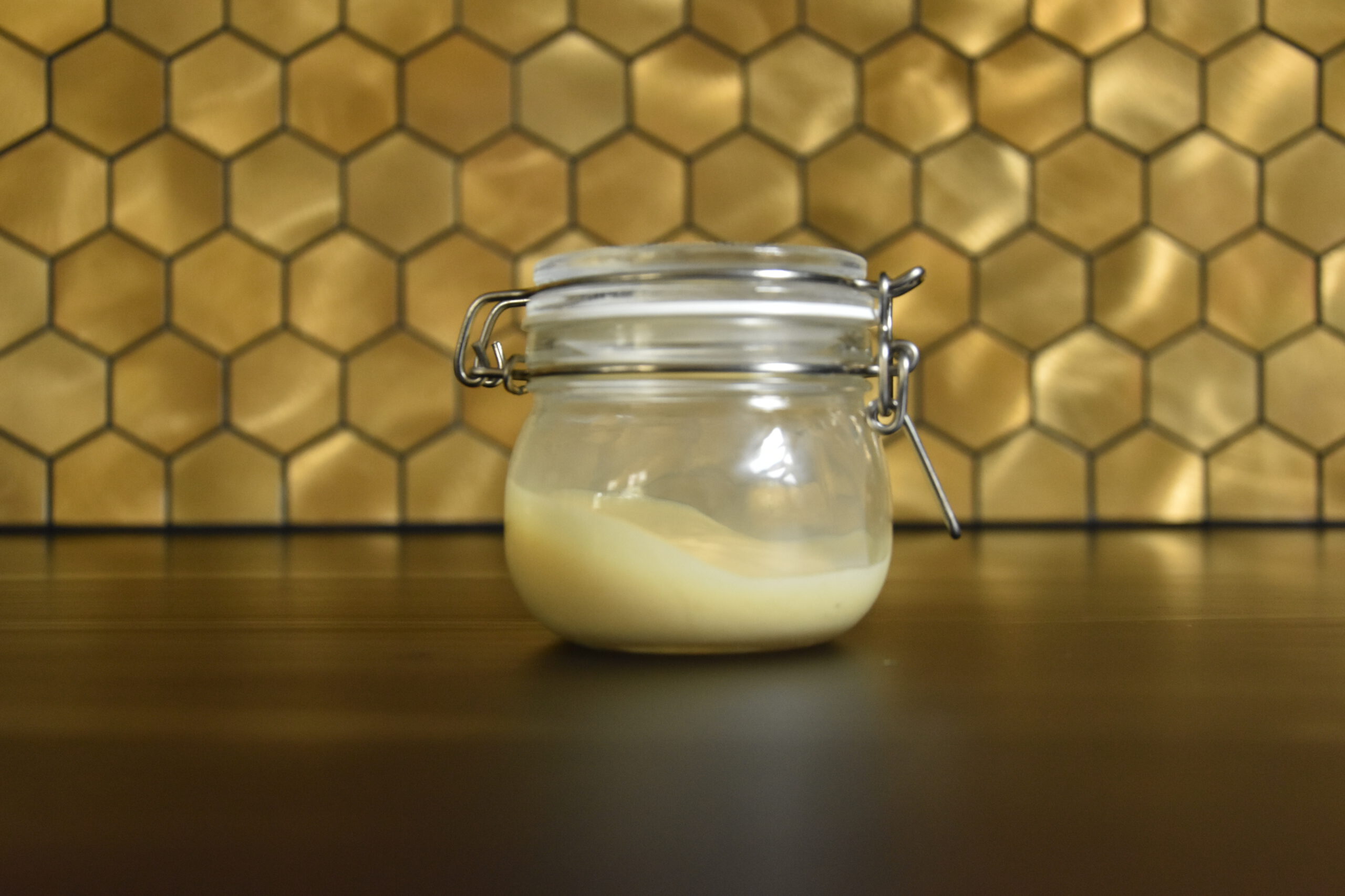 Doe alles bij elkaar in een potje, deksel erop, schudden, schudden en schudden tot alles goed gemengd is. Klaar!