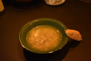 Na 2 uur giet de je soep in een vergiet over in een andere pan. De groente en kip vallen dan in de vergiet, de bouillon vang je op in de andere pan. Zet de bouillon terug op het vuur en laat deze zacht pruttelen. Haal de kippenbouten uit het vergiet, let op, het vlees valt van de botten dus kijken goed of je alles hebt. De groente die achter blijft doet je niets meer mee.